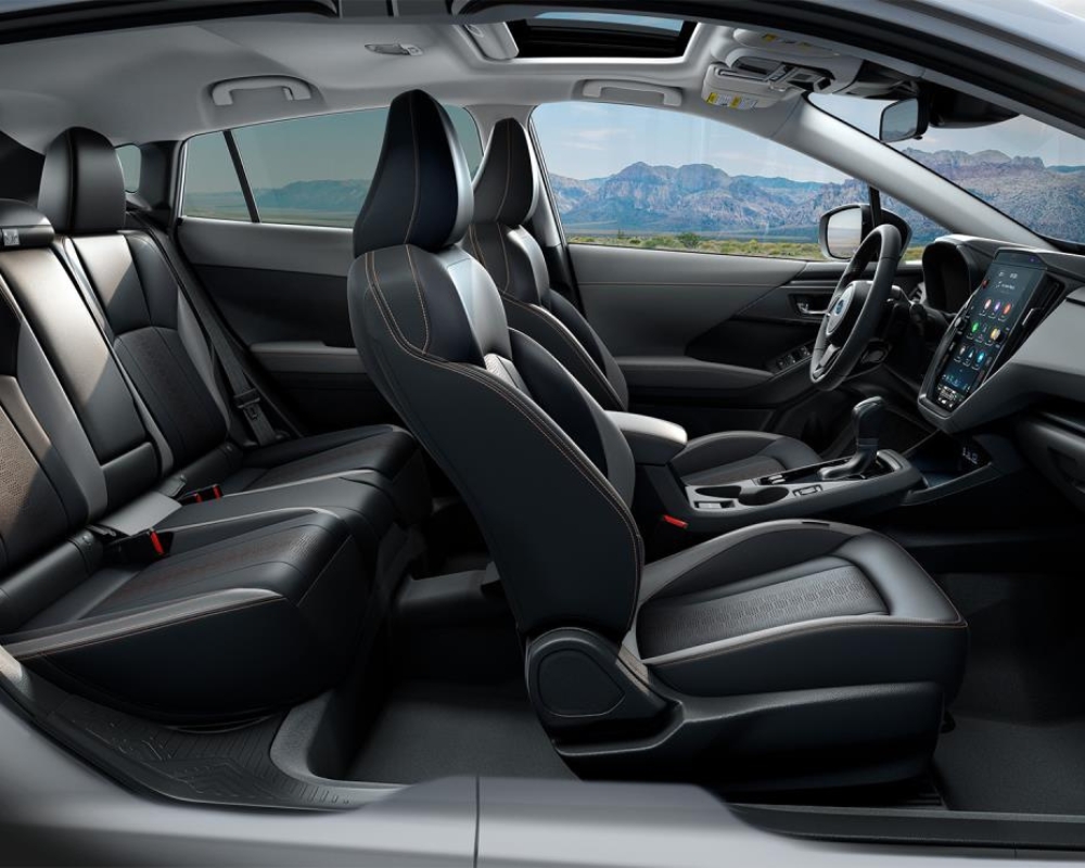 Inside, the Crosstrek balances comfort and functionality. The seating is supportive for long drives, and there’s plenty of space for passengers and gear alike. The back seats fold flat for added cargo space up to 1,549 litres, and soft-touch materials give it a cozy, high-quality feel.